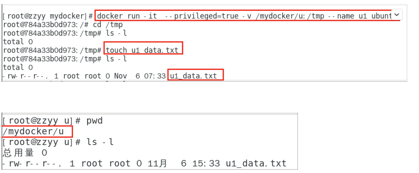 docker run -it --privileged=true -v /mydocker/u:/tmp --name u1 ubuntu