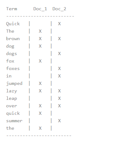 使用前面的索引搜索+Quick +fox不会得到任何匹配文档。(记住,+前缀表明这个词必须存在)。